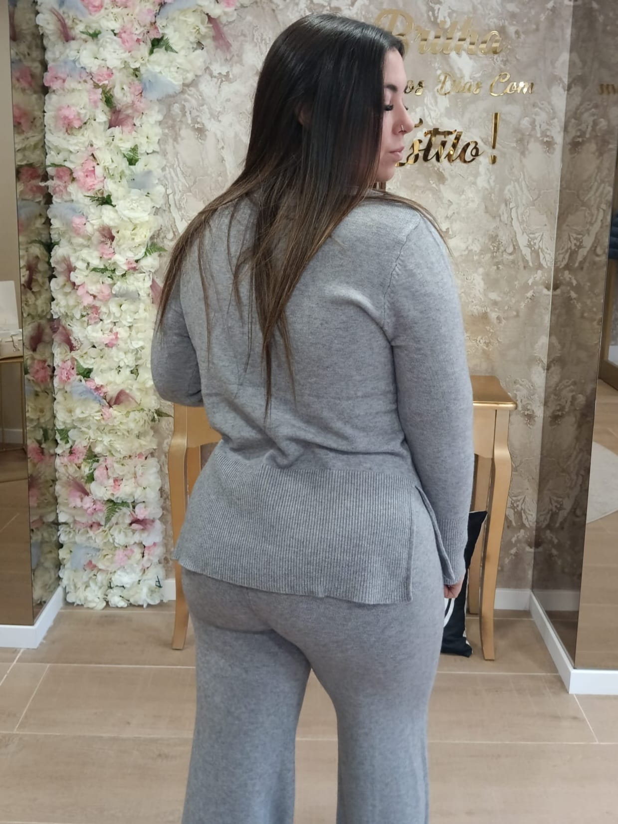 • camisola e calça com detalhe de racha lateral